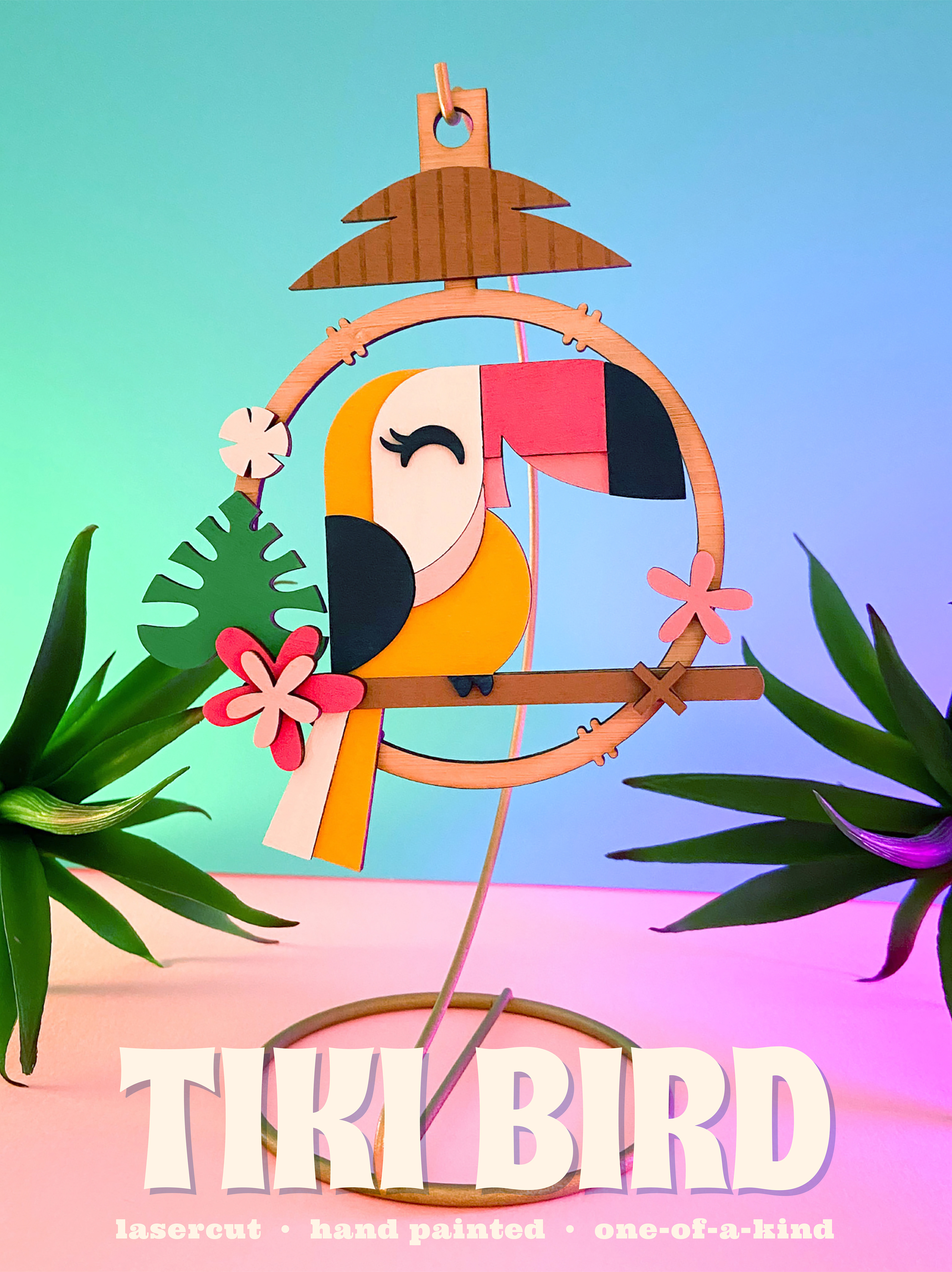 Welcome to a Tropical Hideaway. Hand-painted, laser cut, one-of-a-kind Tiki Birds