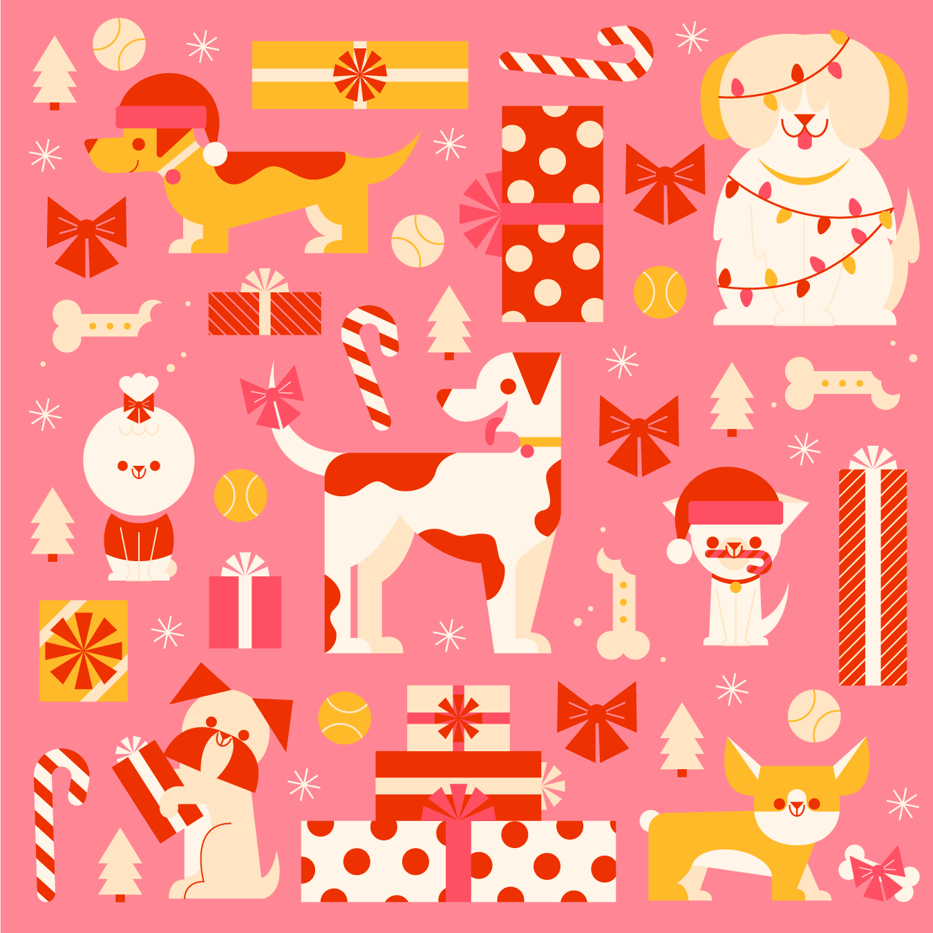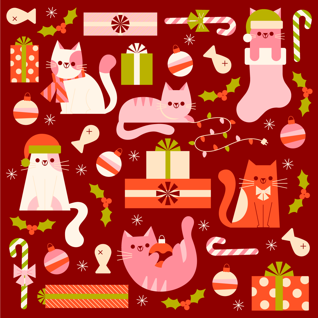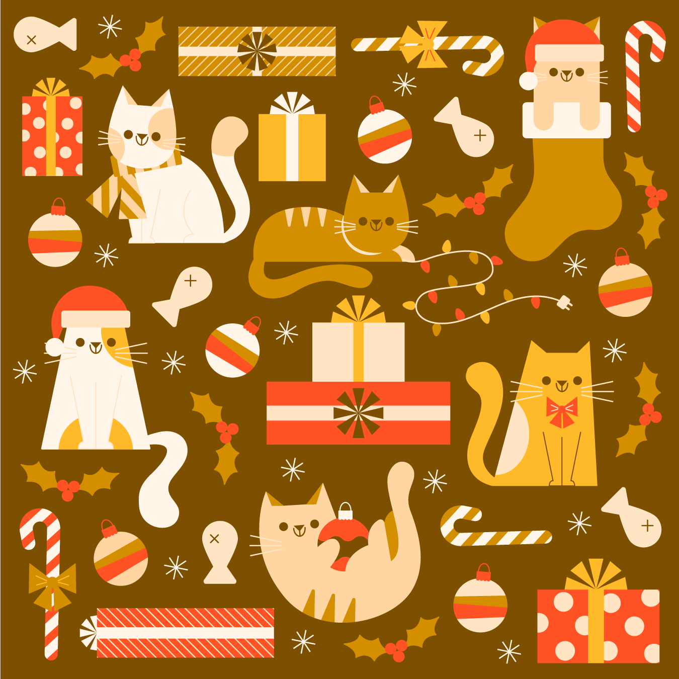 A fun dog and cat Christmas pattern exploration