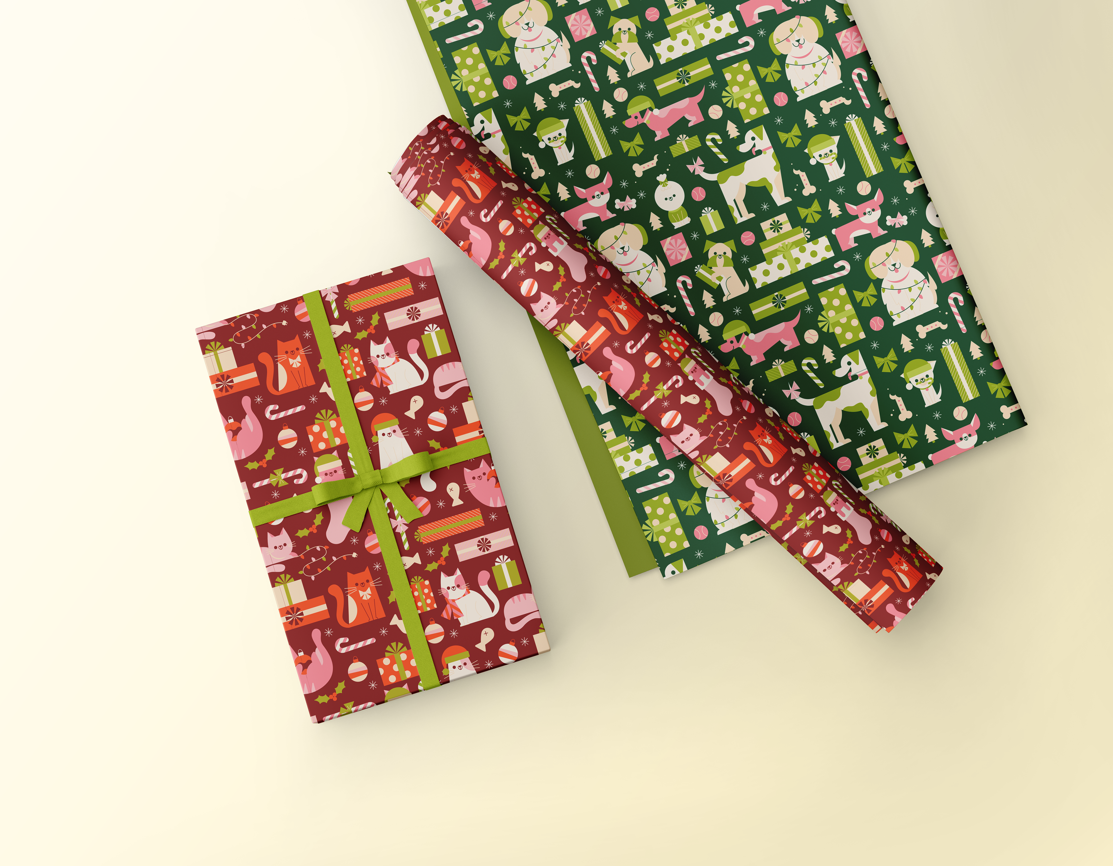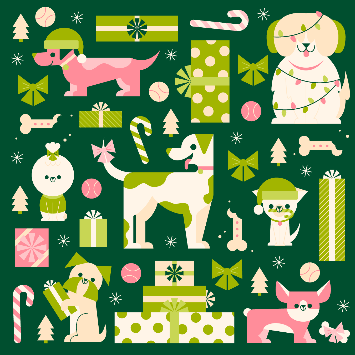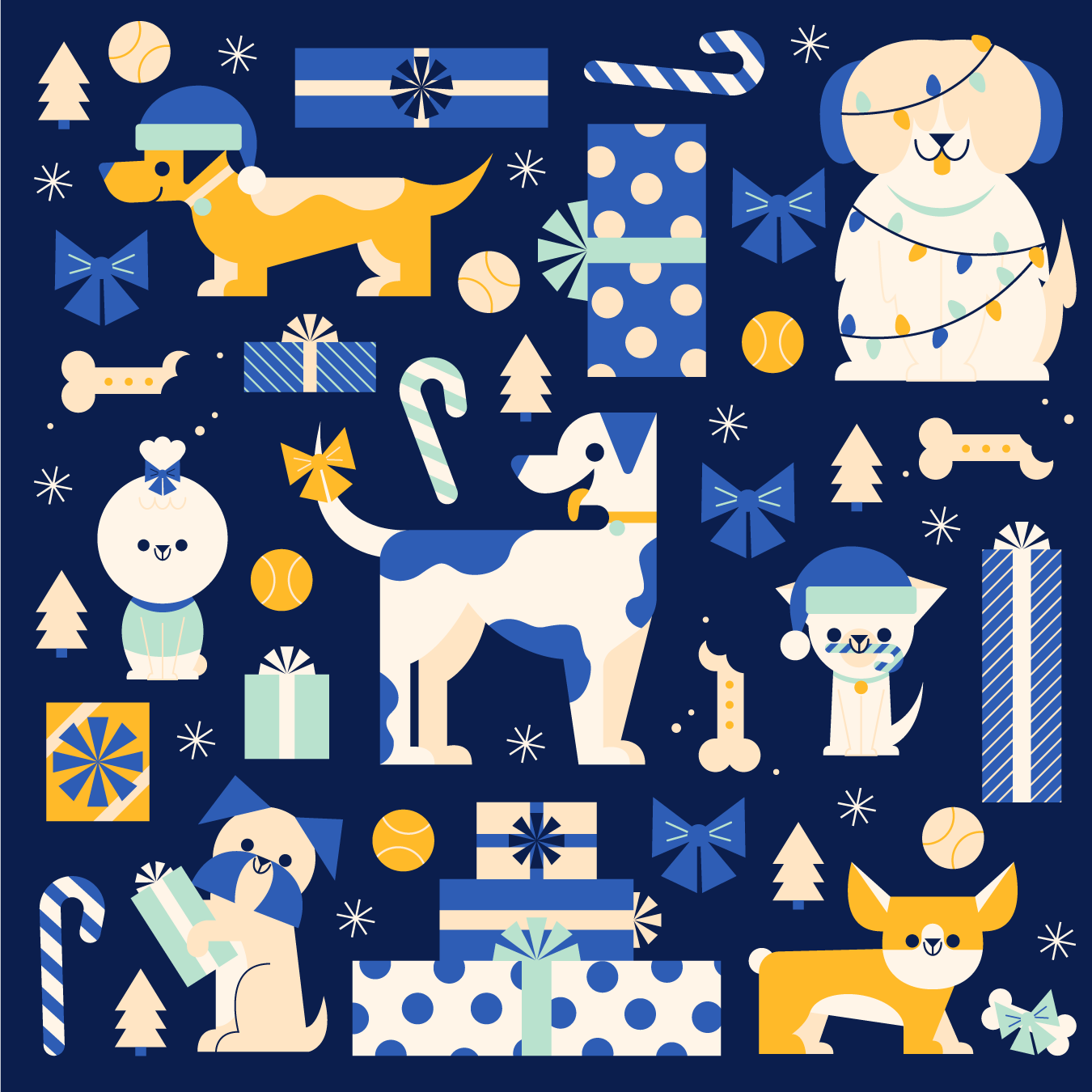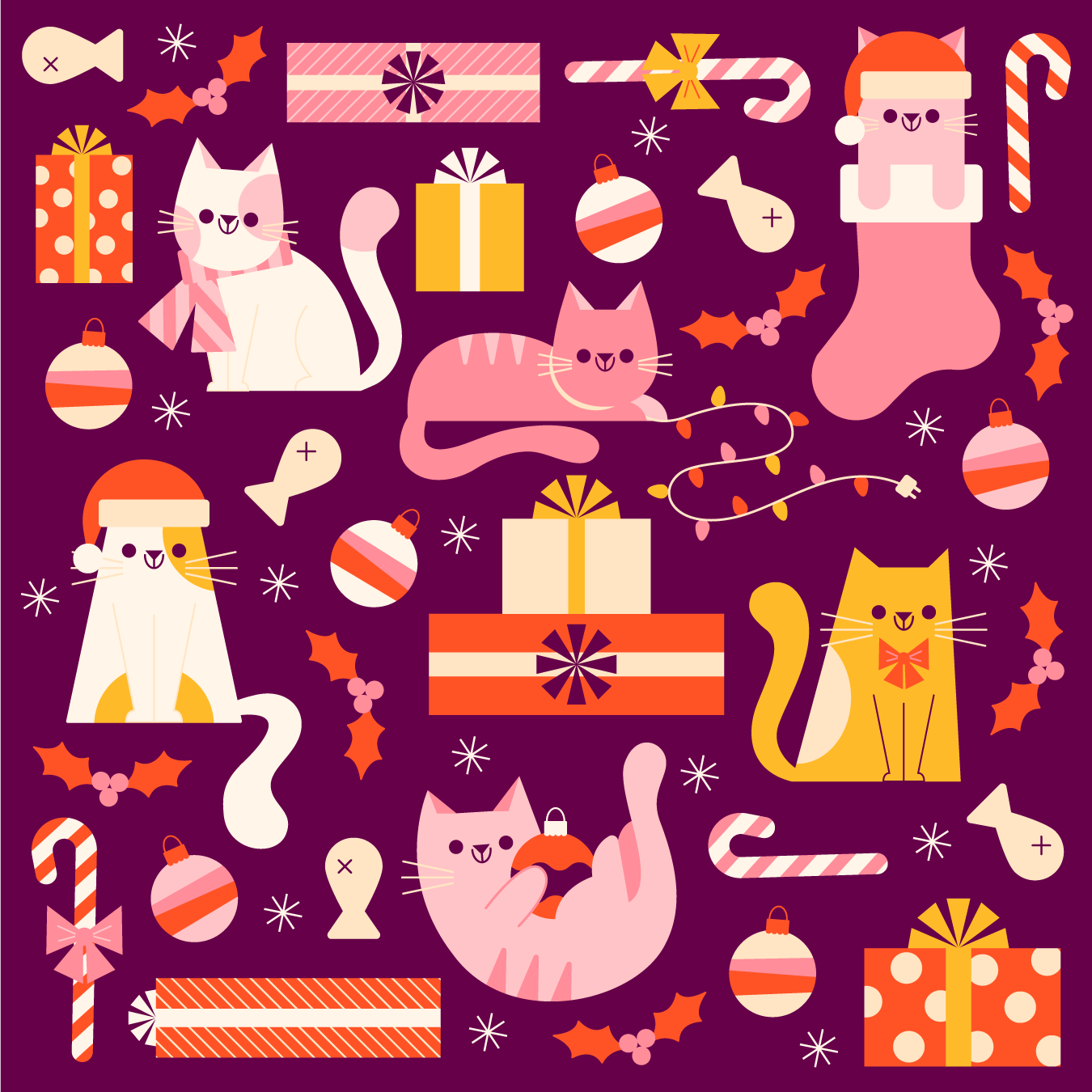 A fun dog and cat Christmas pattern exploration